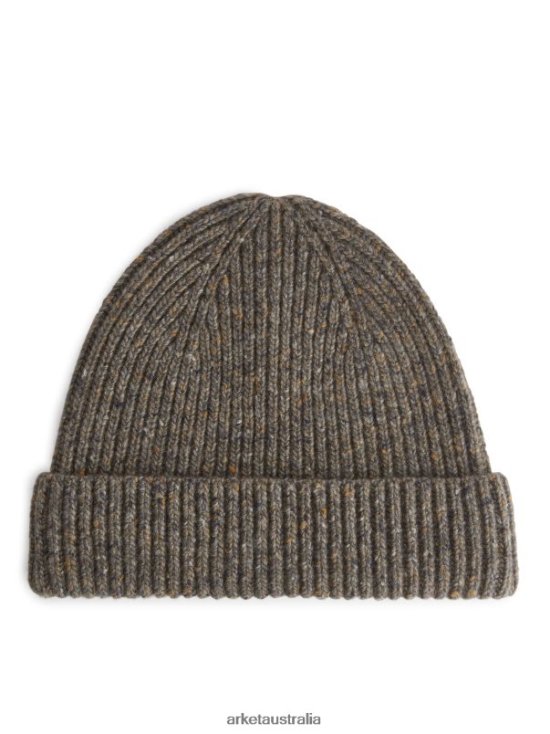 Accessories ARKET Men Rib-Knit Wool Beanie Brown/Neps 886FN81309 Arket Australia