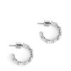 Chunky hoops decorated with rhinestones. Pin with stud closure. Made from silver-plated recycled brass. Diameter 20 mm.