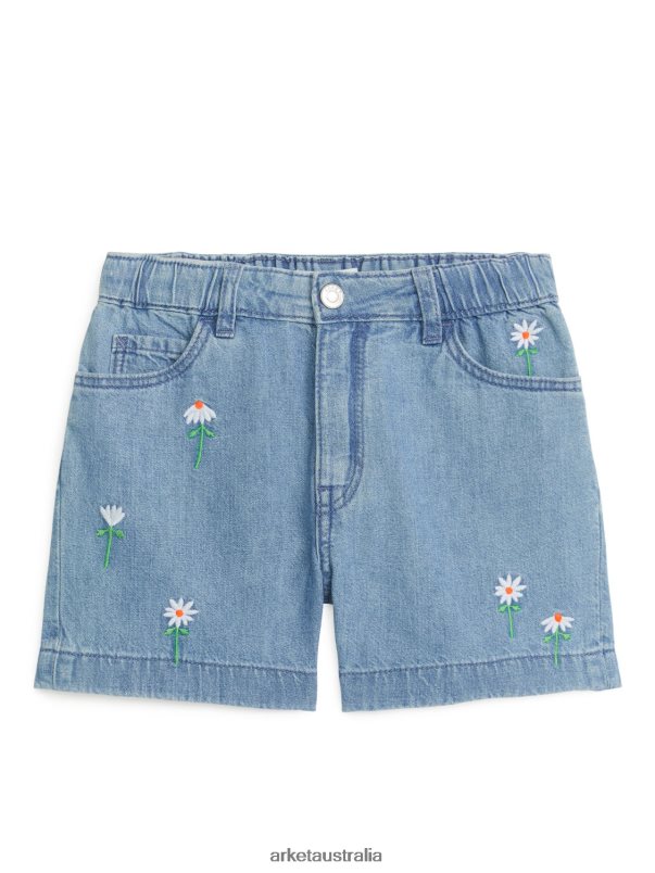Clothing ARKET Kids Embroidered Denim Shorts Light Blue 886FN81560 Arket Blanket