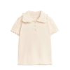 Short-sleeved T-shirt crafted from ribbed jersey. Featuring a round, frill collar with a half-button front and frilled edges.