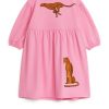 Long-sleeved dress with frill-edge collar and skirt. This dress is crafted from a cotton twill flannel. Button closure at center front.