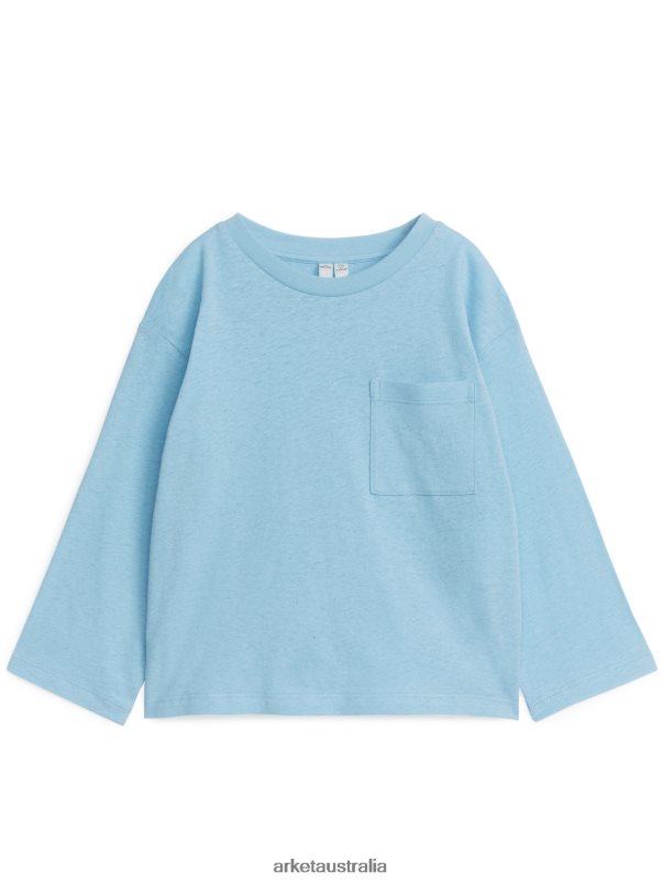 Clothing ARKET Kids Linen-Blend Long Sleeve T-Shirt Light Blue 886FN81491 Arket Blanket
