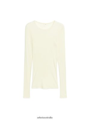 Off-shoulder top sewn from a stretchy single cotton jersey. A long-sleeve style with a slim fit. Flatlock stitching at end of sleeves and at bottom hem.