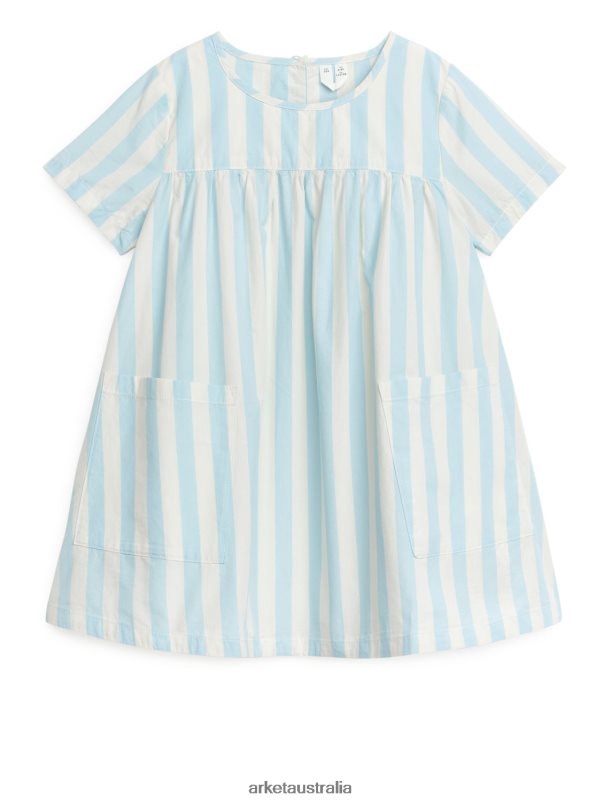 This summer dress is cut from a soft poplin fabric made of pima cotton. The short sleeves and the voluminous silhouette give this dress an airy feel, making it an ideal piece for warm temperatures. It features a yoke at the top, both at the front and at the back, with creases underneath. Detailed with two patch pockets at the front and a keyhole opening with button closure at the back of the neck.