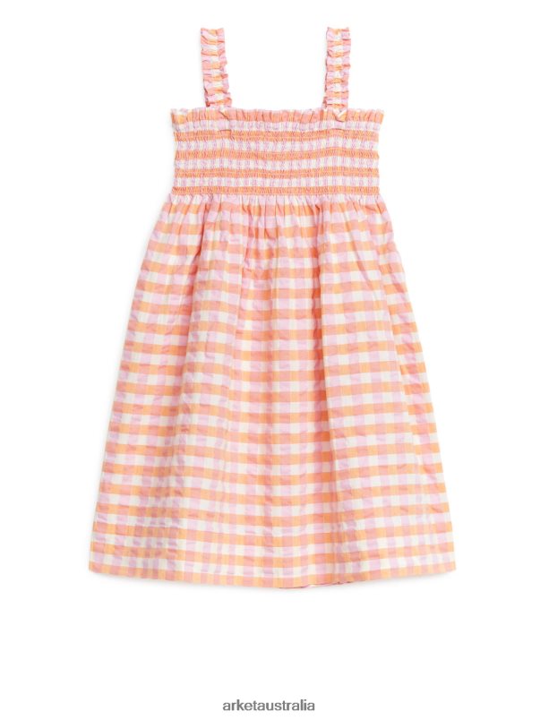 Clothing ARKET Kids Smocked Seersucker Dress Orange/Checked 886FN81376 Arket Boots