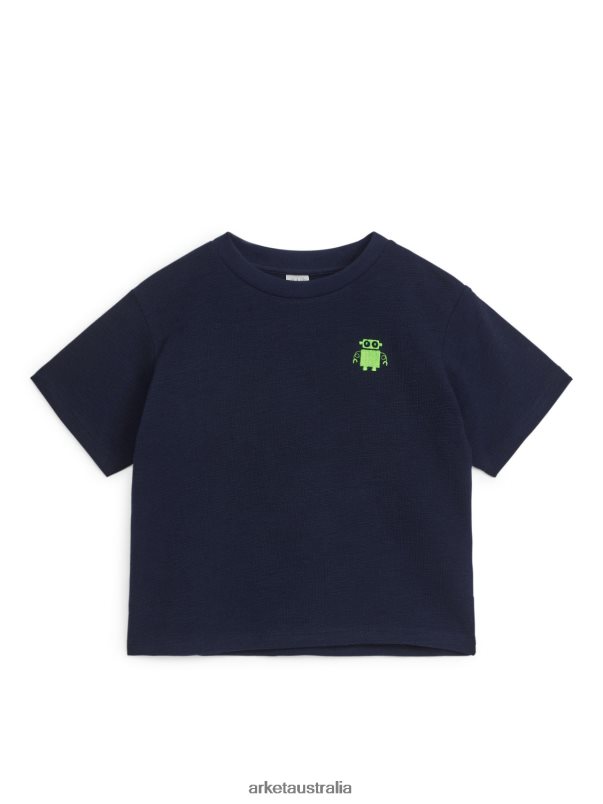 Clothing ARKET Kids Textured T-Shirt Dark Blue/Robot 886FN81459 Arket Australia