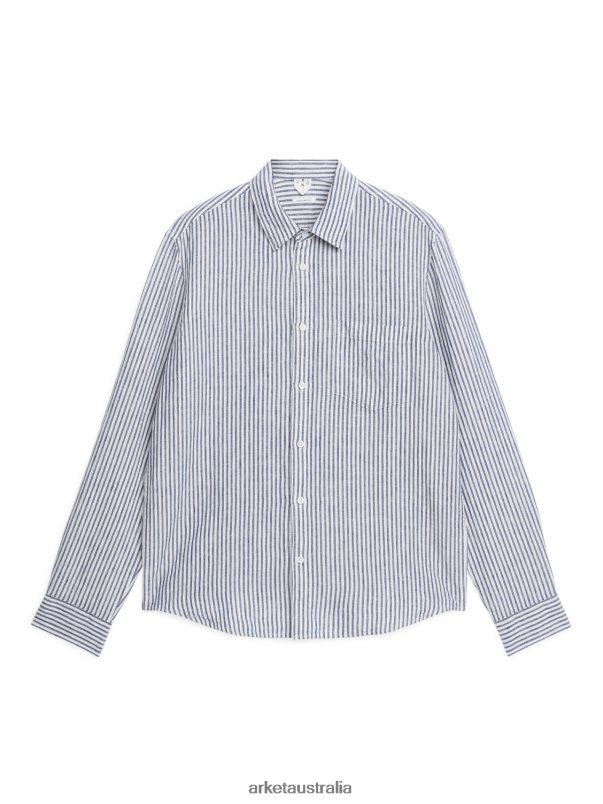 Clothing ARKET Men Regular-Fit Linen Shirt Blue/White 886FN8940 Arket Australia