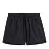 Sporty swim shorts made from a lightweight and durable nylon fabric. Featuring elasticated waist with a drawstring. Two side pockets and slits at side seams. A single back pocket with a hook-and-loop closure. Inside pocket with a practical key hook. Delivered in a small case for easy storage.