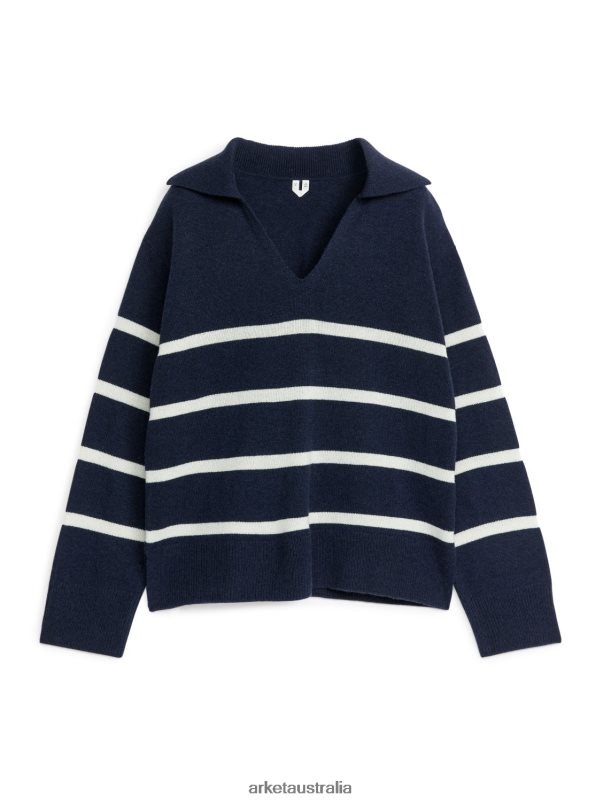 Clothing ARKET Women Cashmere-Wool Jumper Dark Blue/White 886FN8421 Arket Australia