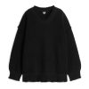 Clothing ARKET Women Knitted Contrast Stitching Jacket Black/Off-White 886FN8415 Arket Australia
