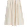 Straight-cut midi skirt with frill details at both front and back. Elasticated waist with a concealed zip at lefthand side and hook-and-eye closure. Slits at side seams. Relaxed fit. Unlined.