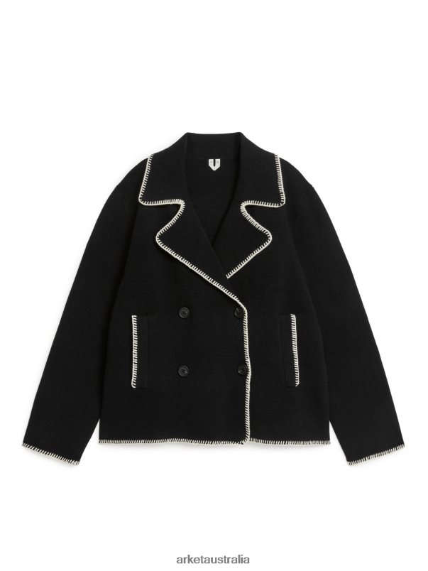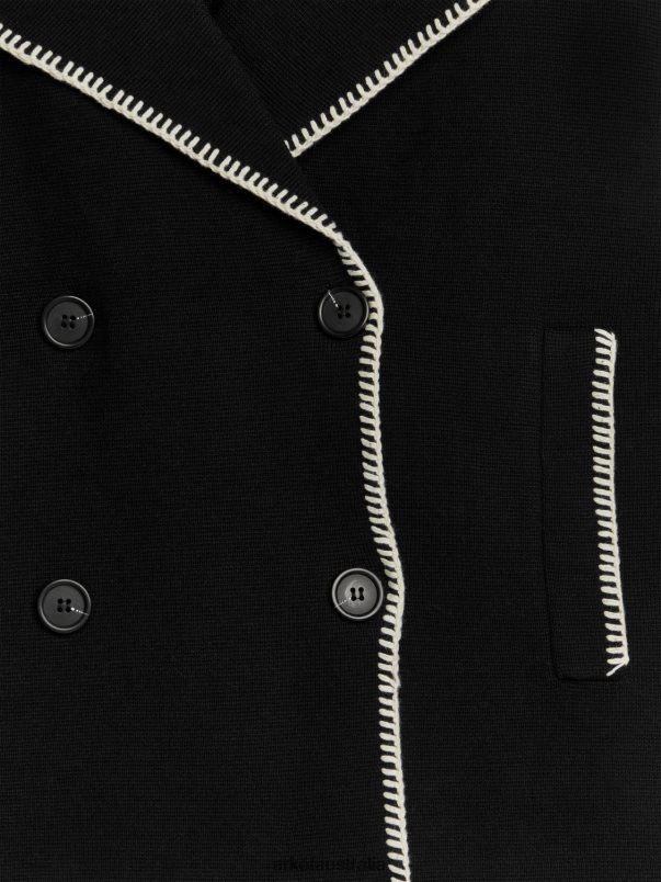 Clothing ARKET Women Knitted Contrast Stitching Jacket Black/Off-White 886FN8415 Arket Australia