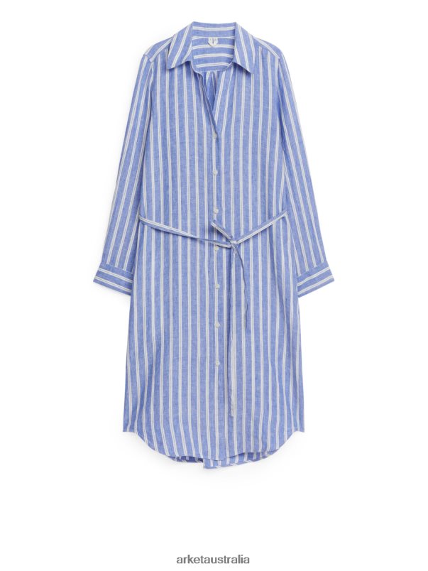 Clothing ARKET Women Linen Shirt Dress Blue/White 886FN876 Arket Australia