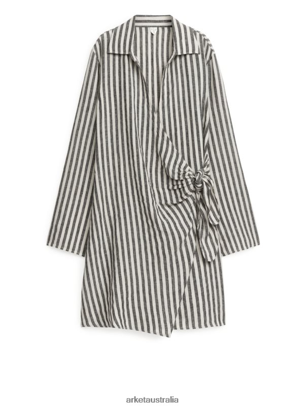 Clothing ARKET Women Linen Wrap Dress Black/White 886FN881 Arket Blanket