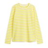 Top in soft merino wool cut from a 1×1 rib knitted in a fine gauge, A tight-fitted style with a slightly transparent appearance, styled with raw-cut edges at the hemline and sleeve ends. This top contains 100% RWS wool, certified by control union 827977. Products certified to the Responsible Wool Standard (RWS) contain wool fiber from farms independently certified to animal welfare and land management requirements.