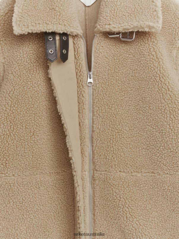 Clothing ARKET Women Oversized Leather-Trimmed Pile Jacket Dark Beige 886FN8473 Arket Boots