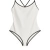 Swimsuit designed with a straight neckline in the front and a deep U-shaped back, slender adjustable straps and bust darts that ensure a smooth shape and a neat fit. Fully lined. High leg opening. Size up for a comfortable fit.