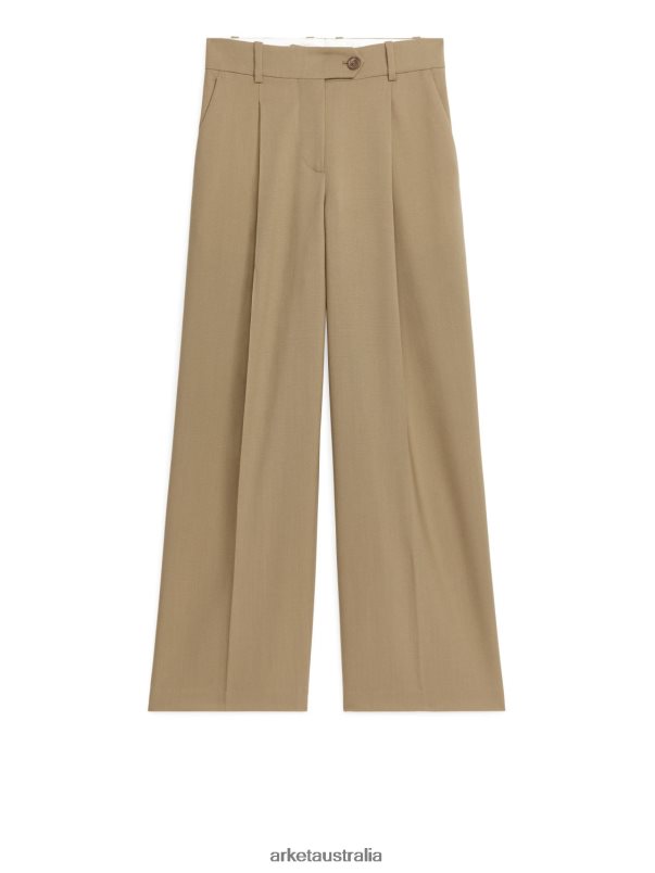 Clothing ARKET Women Wide Hopsack Wool Trousers Dark Beige 886FN8214 Arket Australia