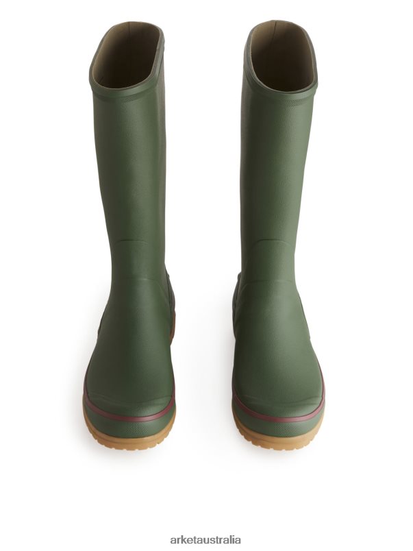 These Tretorn rubber boots are inspired by the original Sarek hiking boots first launched in 1972. As an updated version of the timeless design, the waterproof boots have been adapted to suit longer hikes. Crafted from an extra-soft natural rubber mix construction, they feature a wooden midsole offering better stability and rigidity. A deep tread outsole ensures reliable grip and traction. The shaft can be folded down for ventilation and comfort.