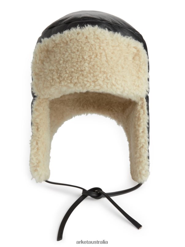 Accessories ARKET Women Leather Trapper Hat Black/Off White 886FN8893 Arket Boots