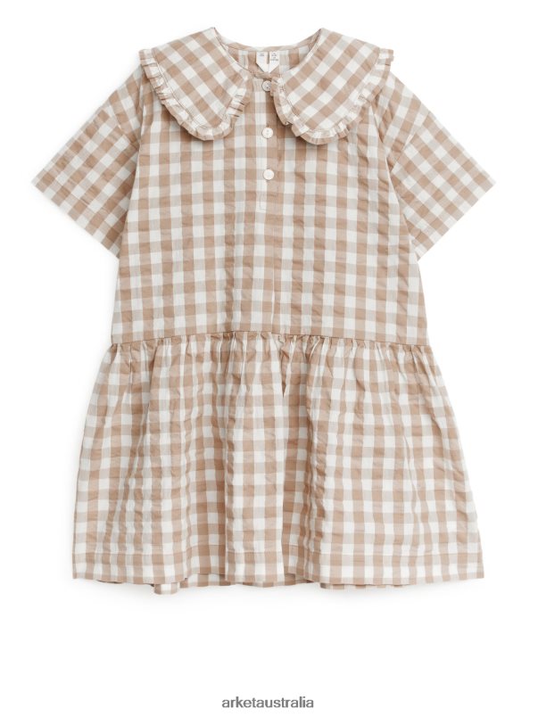 Clothing ARKET Kids Frill-Collar Seersucker Dress Beige/Checked 886FN81369 Arket Australia
