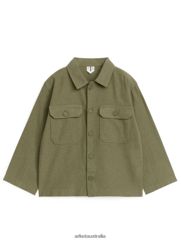 Clothing ARKET Kids Relaxed Cotton-Linen Overshirt Khaki Green 886FN81475 Arket Boots