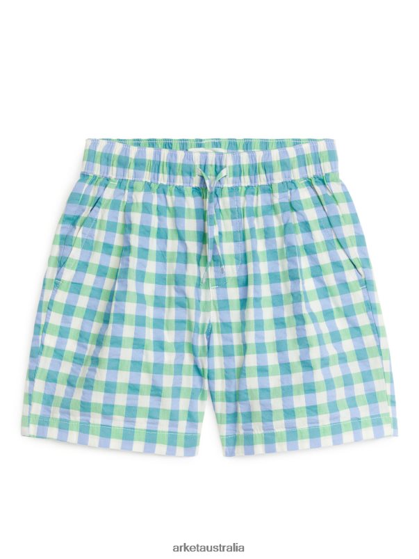 Clothing ARKET Kids Seersucker Shorts Green/Blue/White 886FN81557 Arket Blanket