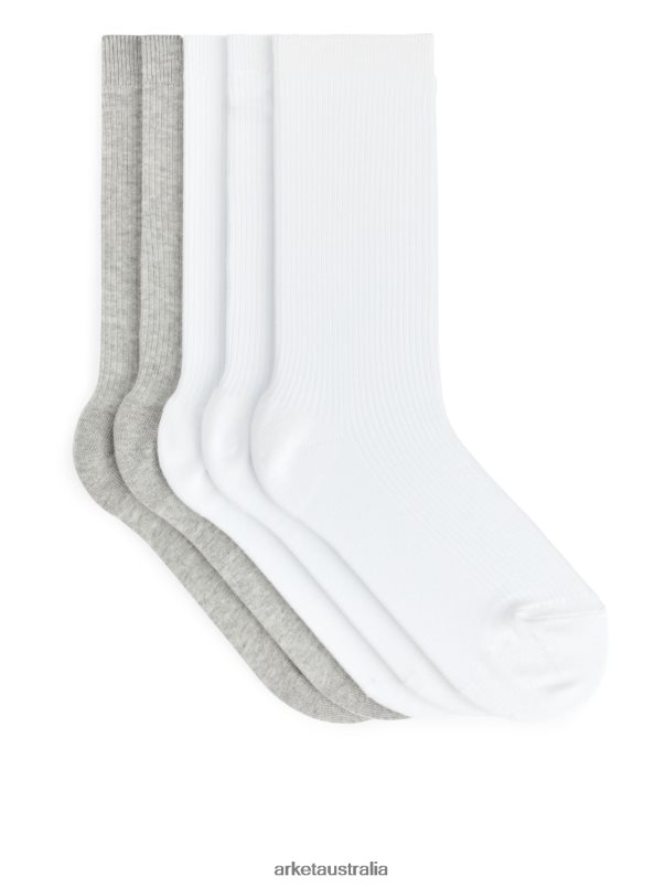 Clothing ARKET Men Cotton Rib Socks Set of 5 White/Grey 886FN8571 Arket Australia
