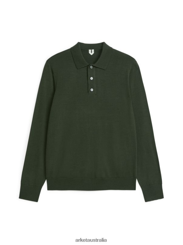 Clothing ARKET Men Merino Polo Jumper Dark Green 886FN81047 Arket Blanket