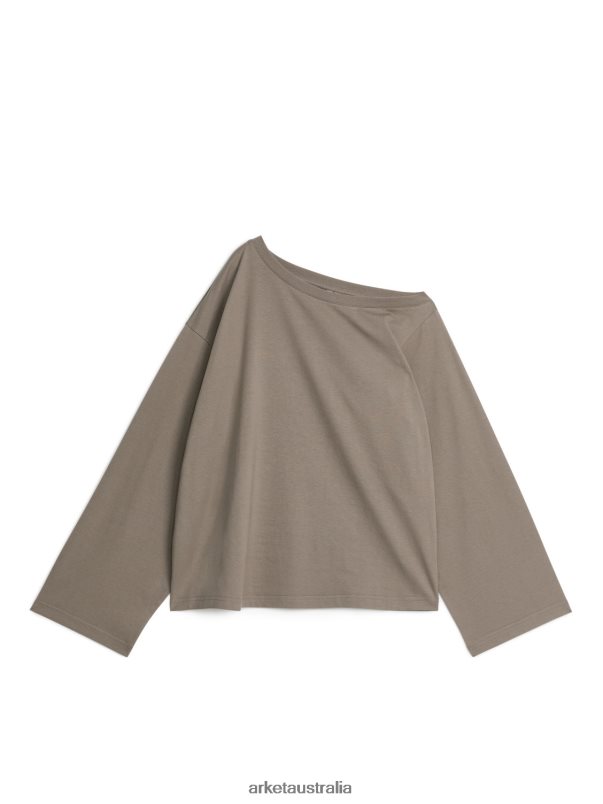 Long-sleeve T-shirt with an asymmetric neckline. An oversized style with roomy sleeves.