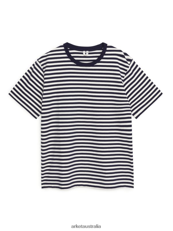 Clothing ARKET Women Heavyweight T-Shirt Dark Blue/Off White 886FN81003 Arket Australia