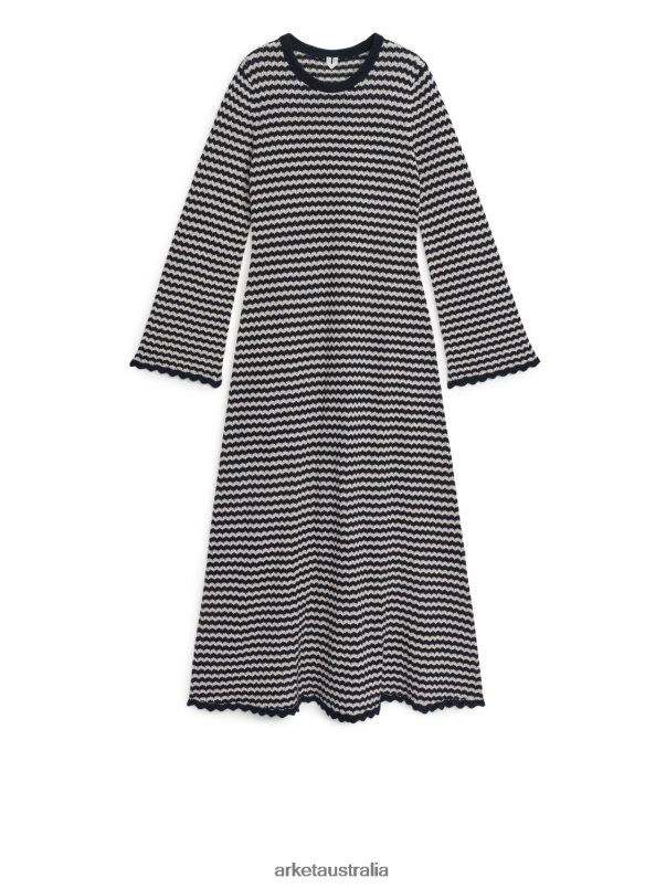 Clothing ARKET Women Knitted Dress Off-White/Dark Blue 886FN8132 Arket Blanket